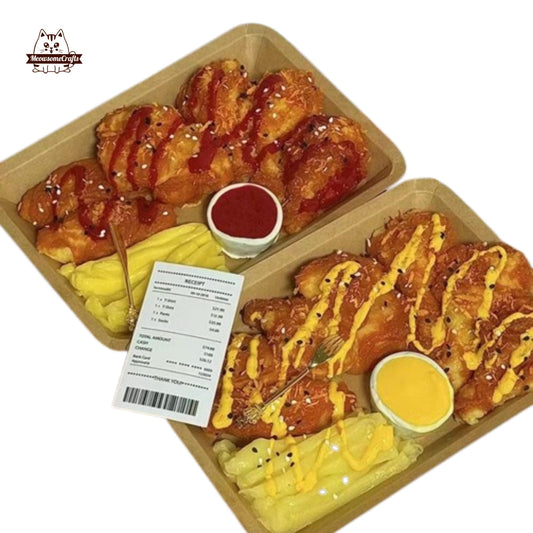 Fried Chicken Wings Drumstick Yellow Mustard Tomato Ketchup Food Handmade Squishy Fidget Toy