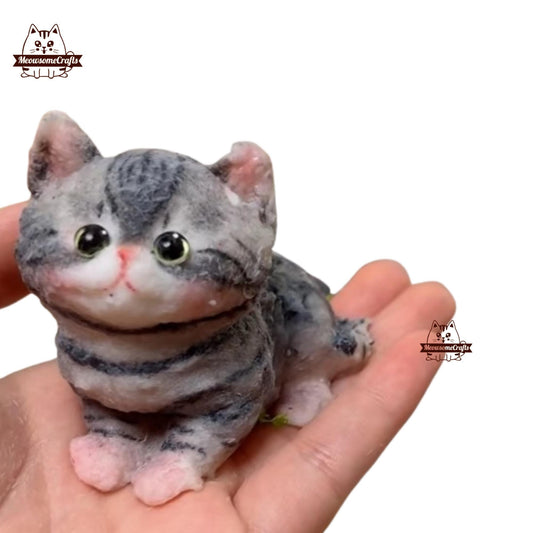 Adorable Furry Gray Striped Kitten Cat Animal Handmade Squishy Fidget Toy