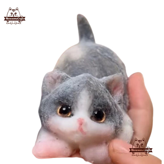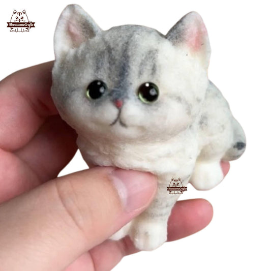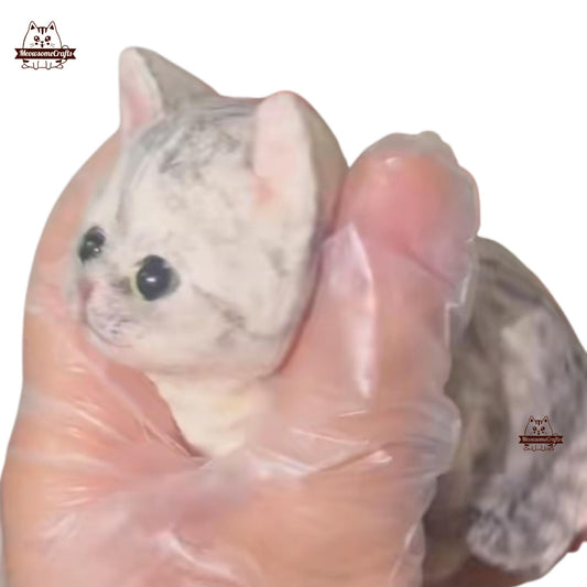 Soft Furry Gray & White Kitten Cat Animal Washable Handmade Squishy Fidget Toy