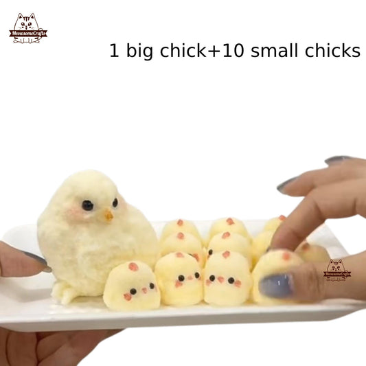 Furry Yellow Chicks Set Family Animal Handmade Squishy Fidget Toy