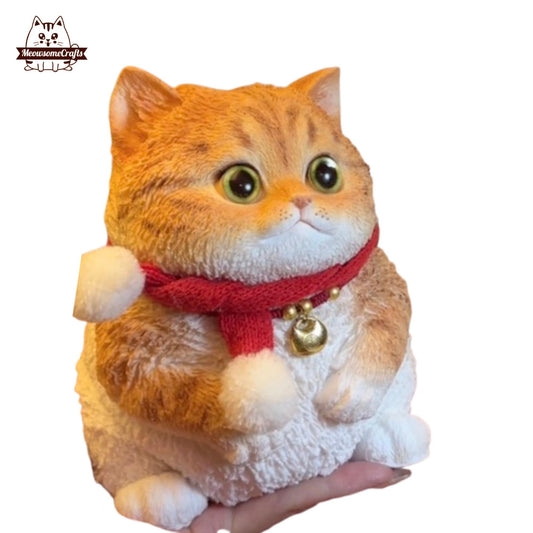 Furry Cute Chubby Striped Orange Cat With Scarf Handmade Squishy Fidget Toy