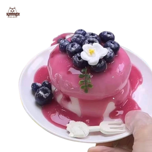 Slow Rising Kawaii Blueberry Soufflé Dessert Food Handmade Squishy Fidget Toy