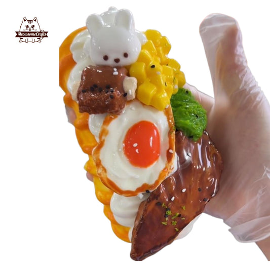 Egg Meat Corn & Veggies Food Kawaii Bunny On Top Handmade Squishy Fidget Toy