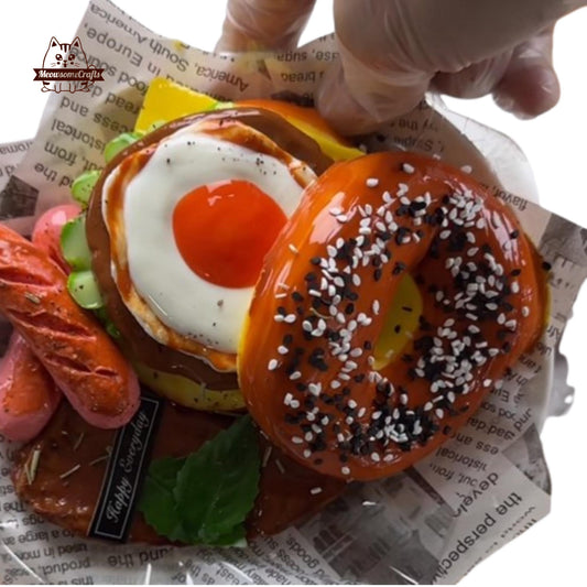 Donut Sunny Side Up Egg Sausages Breakfast Sandwich Food Handmade Squishy Fidget Toy