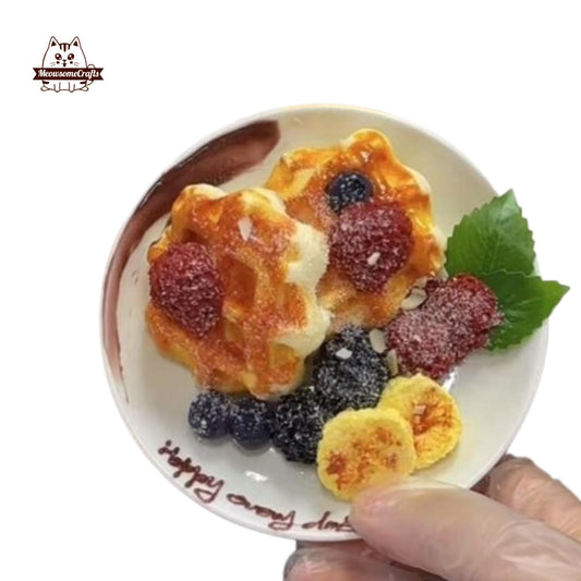 Slow Rising Waffle Fruit Banana Blueberry Dessert Food Handmade Squishy Fidget Toy