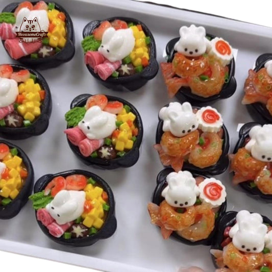Slow Rising Miniature Hot Pot & Shrimp Kawaii Bunny Food Handmade Squishy Fidget Toy