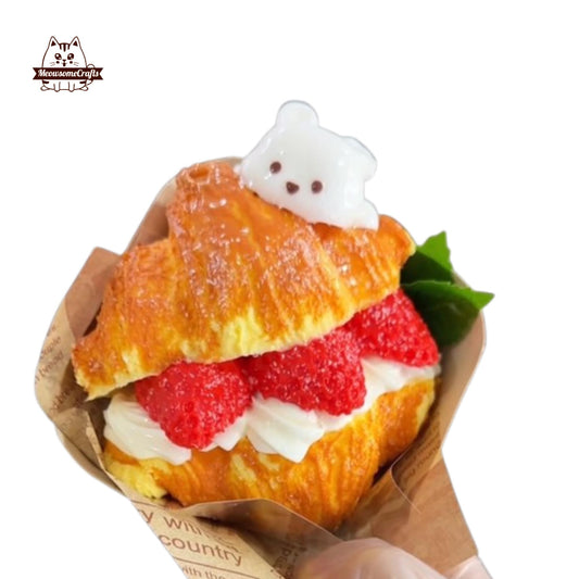 Slow Rising Cute Croissant Strawberry Cream Pastry With Kawaii Bunny Food Handmade Squishy Fidget Toy