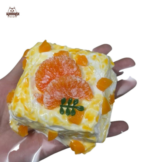 Soft Cream Mango Tangerine Cake Slice Dessert Food Handmade Squishy Fidget Toy