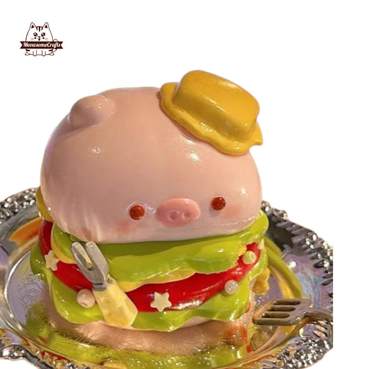 Pig Face Burger Food Handmade Squishy Fidget Toy