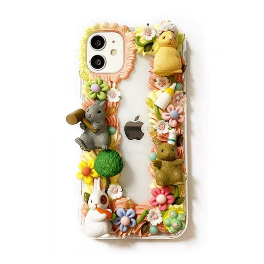 Decoden Custom Phone Case DIY Craft Kit | Bunny Rabbits Chef Flower Crown Hammer Carrot Charms | Samsung Android iPhone Cases