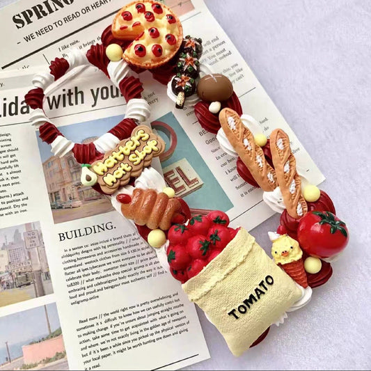 Decoden Custom Phone Case DIY Craft Kit | Food Bread Pizza Tomatoes Wrapped Hot Dog Mushrooms Charms | Samsung Android iPhone Cases