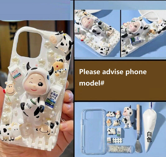 Decoden Custom Phone Case DIY Craft Kit | Kawaii Cow Costume Baby Cows Milk Cartons Sheep Pearls Charms | Samsung Android iPhone Cases