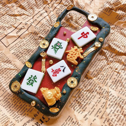 Decoden Custom Phone Case DIY Craft Kit | Mahjong Tiles Chinese Good Luck Feng Shui Coins Charms | Samsung Android iPhone Cases