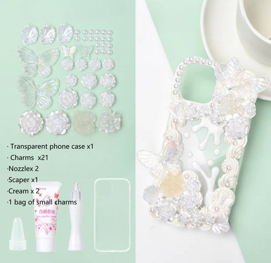Decoden Custom Phone Case DIY Craft Kits | Iridescent Butterflies Flowers Roses Frames Pearls Charms | Samsung Android iPhone Cases