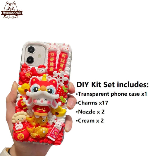 Decoden Custom Phone Case DIY Craft Kits | Chinese Lion Dance Hat Rabbit Baby Rabbits Lucky Bag Charms | Samsung Android iPhone Cases