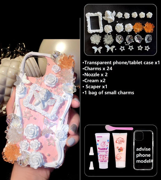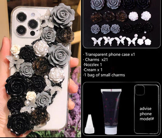 Decoden Custom Phone Case DIY Craft Kits | Pink White Peach Black Gray Roses Butterflies Charms | Samsung Android iPhone Cases