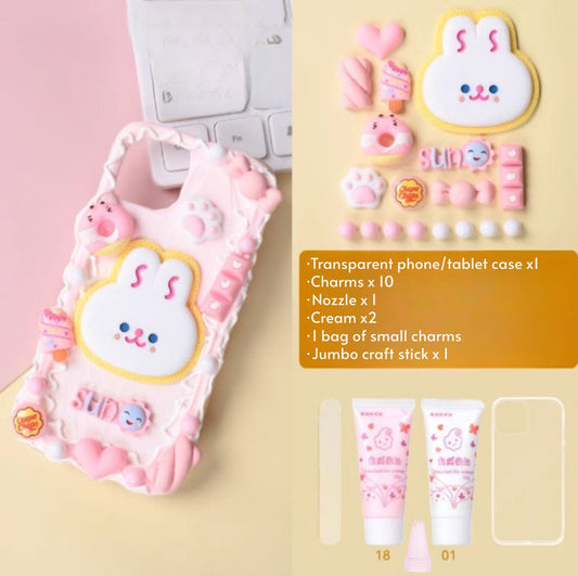 Decoden Custom Phone Case DIY Craft Kits | Kawaii Rabbit Face Food Candy Color Pearls Charms | Samsung Android iPhone Cases