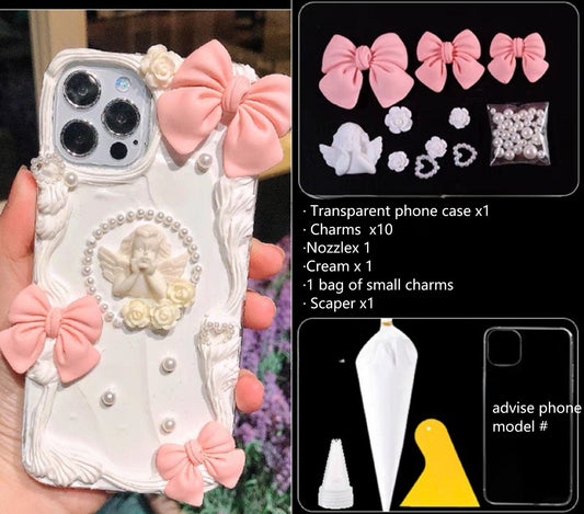Decoden Custom Phone Case DIY Craft Kits | Ornate Frame Angel Flowers Daisies Bows Pearls Charms | Samsung Android iPhone Cases