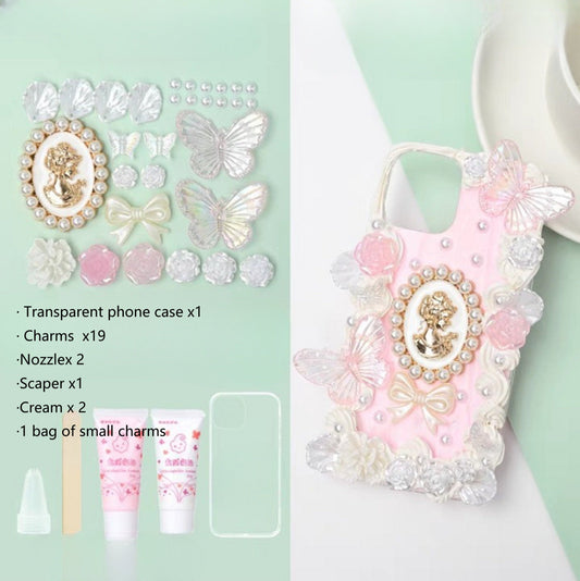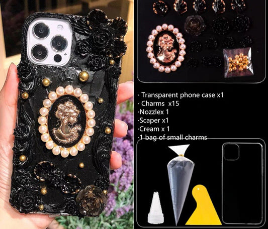 Decoden Custom Phone Case DIY Craft Kits | Pearl Frame Lady Portrait Flowers Butterfly Charms | Samsung Android iPhone Cases