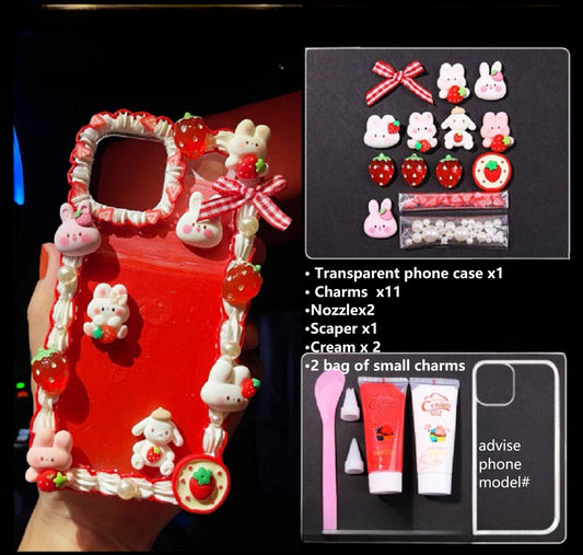 Decoden Custom Phone Case DIY Craft Kits | Rabbits Strawberries Carrots Bow Ribbons Pearls Charms | Samsung Android iPhone Cases