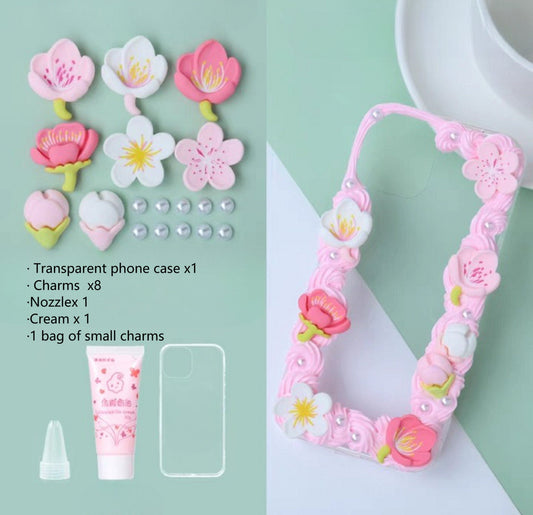 Decoden Custom Phone Case DIY Craft Kits | Sakura Flowers Pearls Color Beads Plaid Ribbon Charms | Samsung Android iPhone Cases