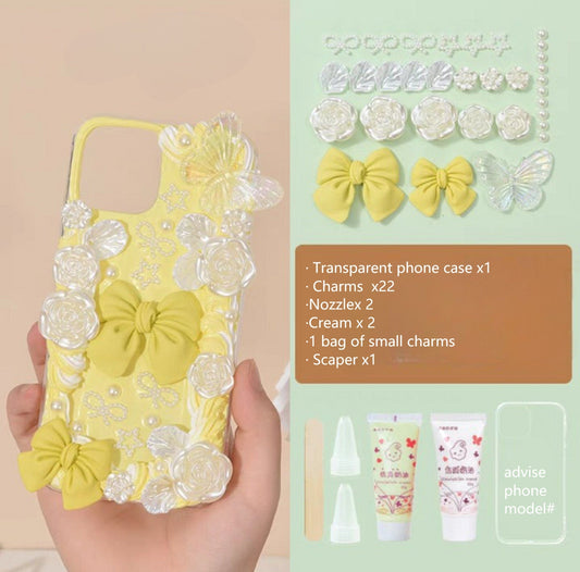 Decoden Custom Phone Case DIY Craft Kits | Yellow Blue Pink Bows Stars Snowflakes Roses Charms | Samsung Android iPhone Cases