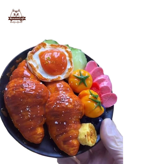 Realistic Croissant and Egg Breakfast Platter Handmade Squishy Fidget Toy