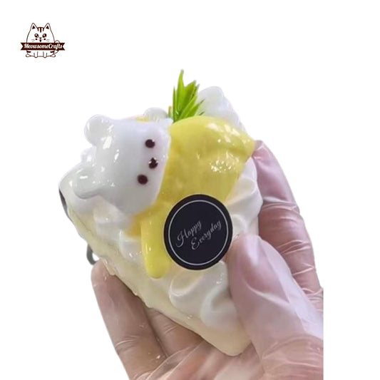 Kawaii Rabbit on Slice of Cake Dessert Food Handmade Squishy Fidget Toy