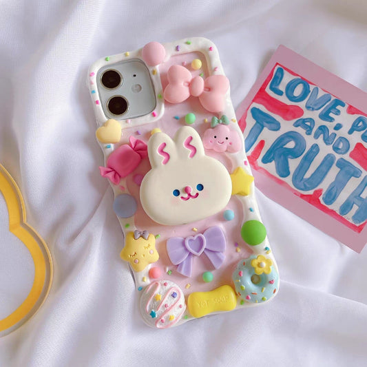 Decoden Custom Phone Case DIY Craft Kit | Kawaii Rabbit Ice Cream Sandwich Candy Hearts Charms | Samsung Android iPhone Cases