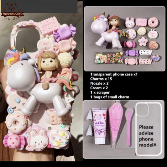 Decoden Custom Phone Case DIY Craft Kit | Kawaii Unicorn Girl Food Donut Candy Cookies Charms | Samsung Android iPhone Cases