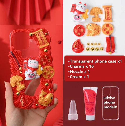 Decoden Custom Phone Case DIY Craft Kits | Chinese Fortune Cat Lantern Scroll Lucky Bag Money Tree Charms | Samsung Android iPhone Cases
