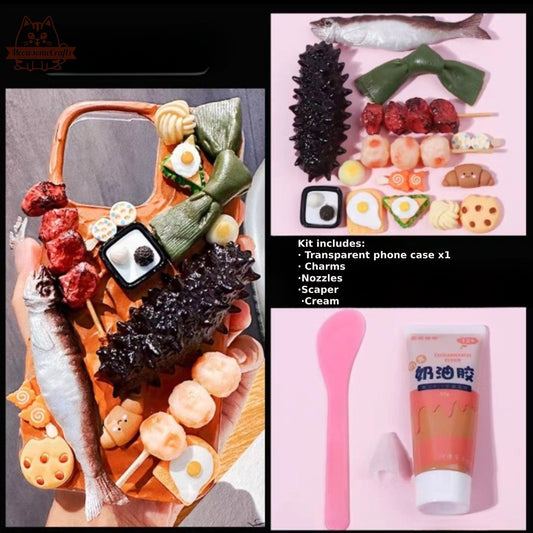 Decoden Custom Phone Case DIY Craft Kits | Food Sushi Dumplings Pizza Bread Meat Dessert Charms | Samsung Android iPhone Cases