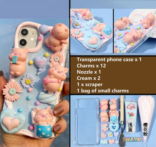 Decoden Custom Phone Case DIY Craft Kits | Kawaii Pig Watermelon Flowers Heart Balloon Candy Charms | Samsung Android iPhone Cases
