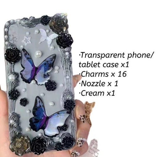 Decoden Custom Phone Case DIY Craft Kits | Purple Blue Butterflies Roses Pearls Charms | Samsung Android iPhone Cases