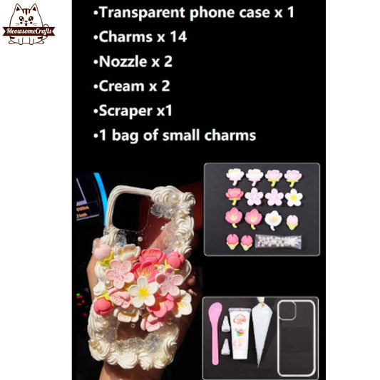 Decoden Custom Phone Case DIY Craft Kits | Sakura Flowers Pearls Teardrop Pearls Charms | Samsung Android iPhone Cases