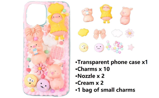 Decoden Custom Phone Case DIY Craft Kits | Kawaii Pigs School Supplies Food Drinks Toys Charms | Samsung Android iPhone Cases