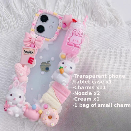 Decoden Custom Phone Case DIY Craft Kits | Girl Kid Smiling Happy Faces Milk Cookies Bear Rabbit Charms | Samsung Android iPhone Cases