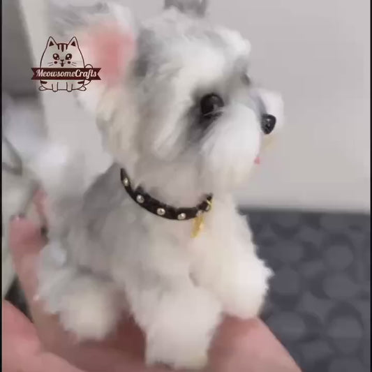 Handmade Chenille Stem Schnauzer Puppy Dog Keychain Ornament | Custom Replica Memorial Gift