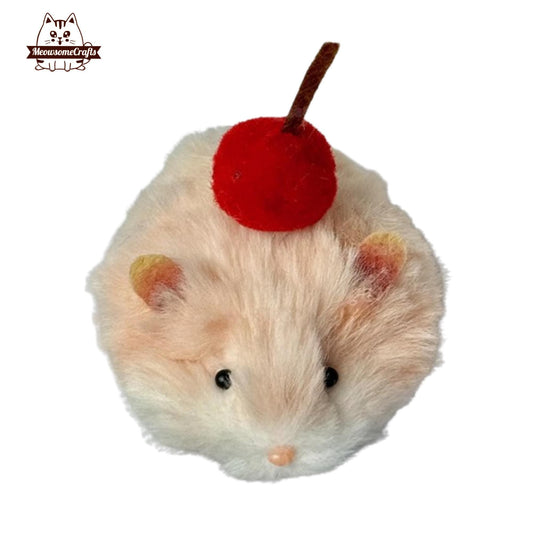 Handmade Chenille Stem Fluffy Hamster With A Cherry Keychain Ornament | Animal Figurine