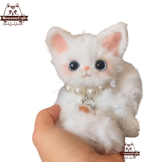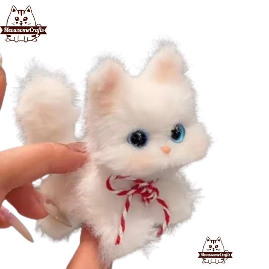 Handmade Chenille Stems Fluffy White Cat With Glasses | Animal Figurine Keychain