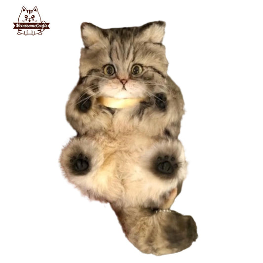 Handmade Chenille Stem Fluffy Long Haired Kitten Tabby | Animal Figurine