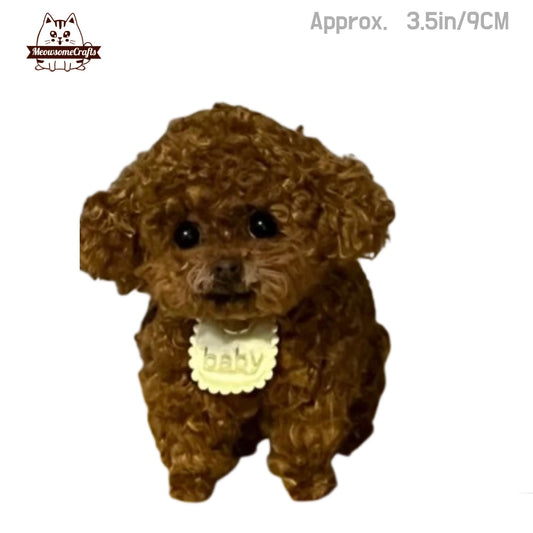 Handmade Chenille Stem Fluffy Teddy Puppy Dog With Baby Bib | Animal Figurine