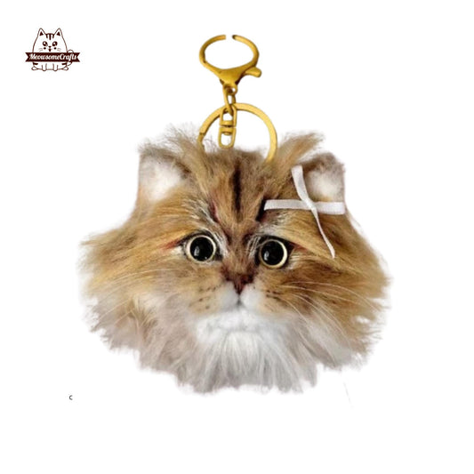 Handmade Chenille Stem Custom Fluffy Cat Portrait Keychain | Personalized Pet Ornament