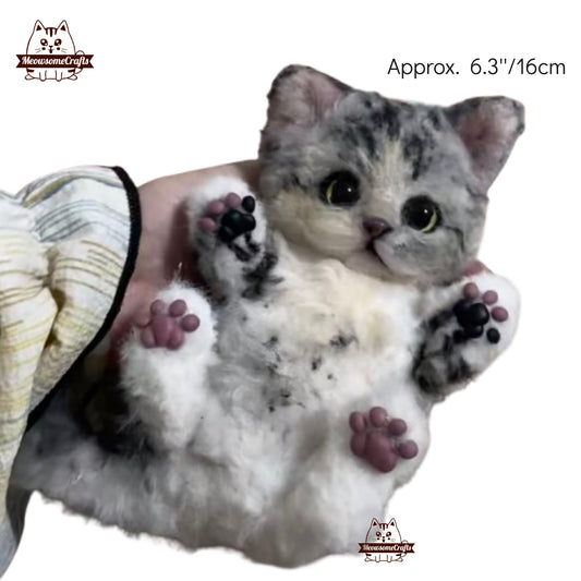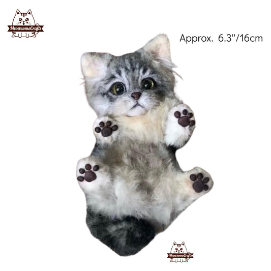 Handmade Chenille Stem Fluffy Playful Gray & White Kitten Cat Keychain Bag Ornament | Animal Figurine