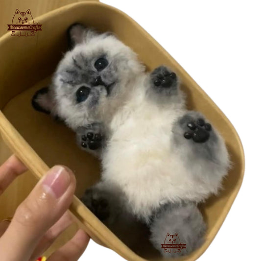 Handmade Chenille Stem Furry Siamese Kitten Cat | Animal Figurine