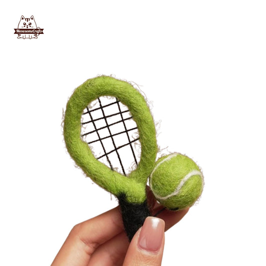 Handmade Needle Felted Tennis Racket & Ball Keychain | Finished Felted Keychain
