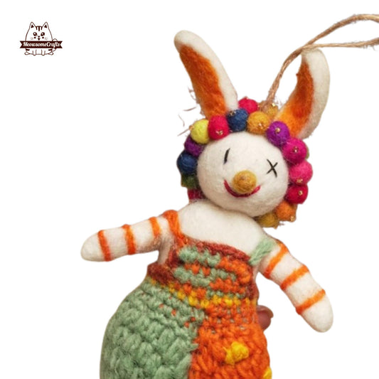 Handmade Needle Felted Clown Bunny Rabbit Keychain Bag Accessory | Finished Felted Rabbit