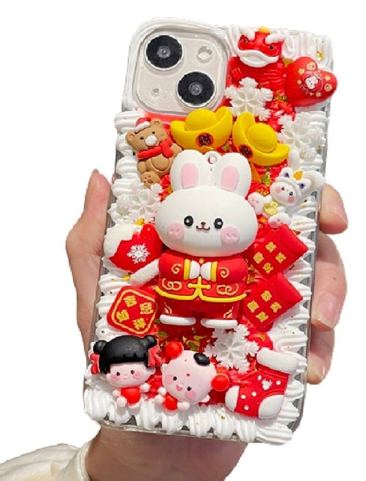 Finished Handmade Decoden Phone Cases | Chinese Rabbit Red Envelope Kids Easter Rabbit Flowers Carrot Balloons Charms | Samsung Android iPhone Cases