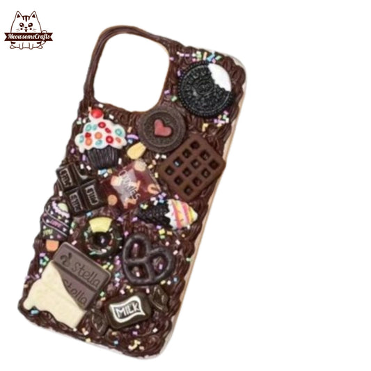 Finished Handmade Decoden Phone Cases | Chocolate Bar Candy Cupcake Ice Cream Dessert Charms | Samsung Android iPhone Cases