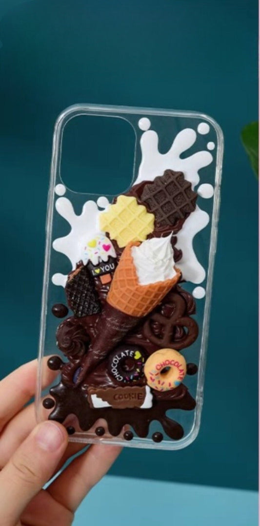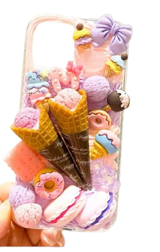 Finished Handmade Decoden Phone Cases | Ice Cream Cone Cookies Candy Cupcake Chocolate Dessert Charms | Samsung Android iPhone Cases